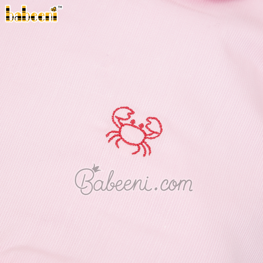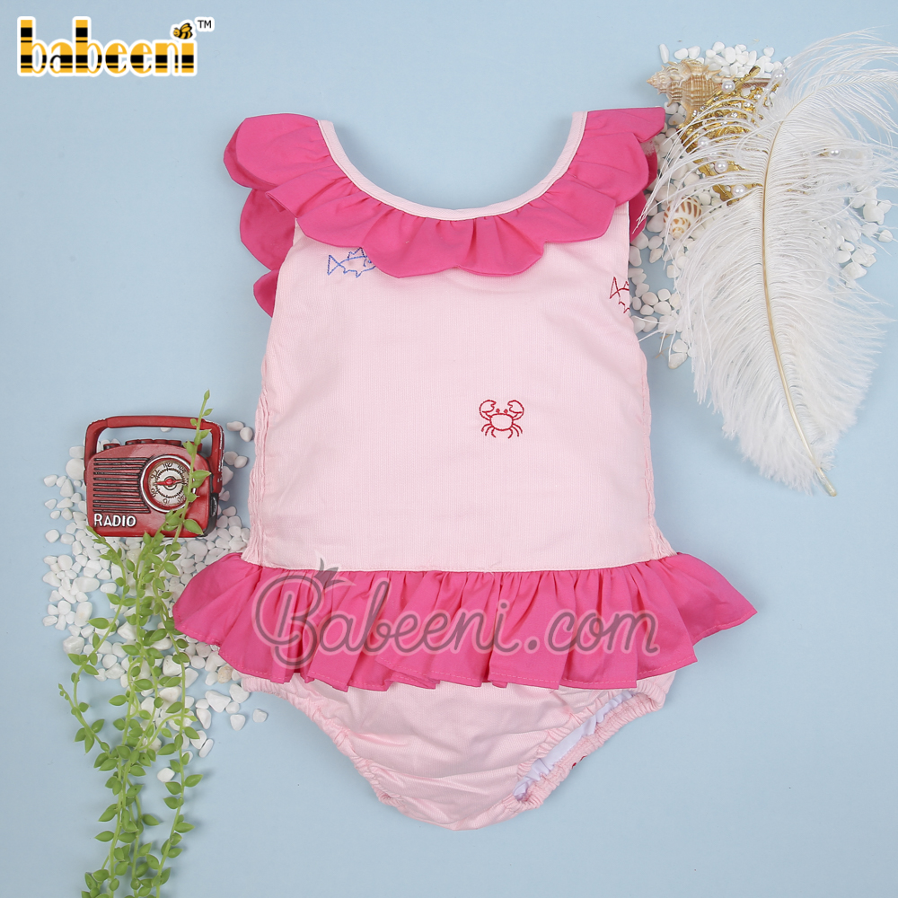 Feature:Pretty swimsuit for little girl with crab, fish and octopus machine embroidery patterns, elastic waistband