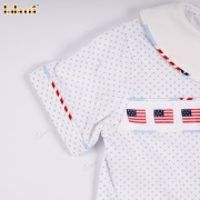 Feature: This little outfit exudes the freshness of summer with a white polka-dot t-shirt, accented with a striking American flag stripe down the front and a cute square neckline. The wide-leg pants, also printed with the American flag, are made from soft material with a comfortable elastic waistband, creating a youthful and adorable look. Perfect for outings, festivals, or as a great summer gift.