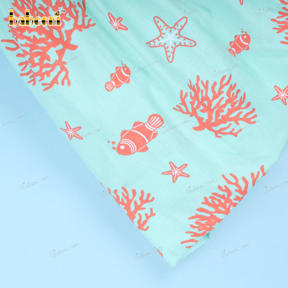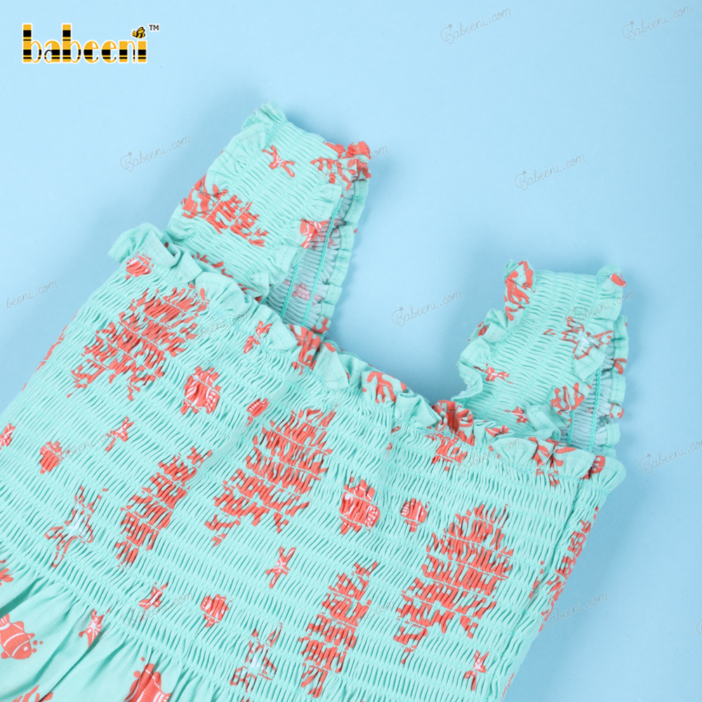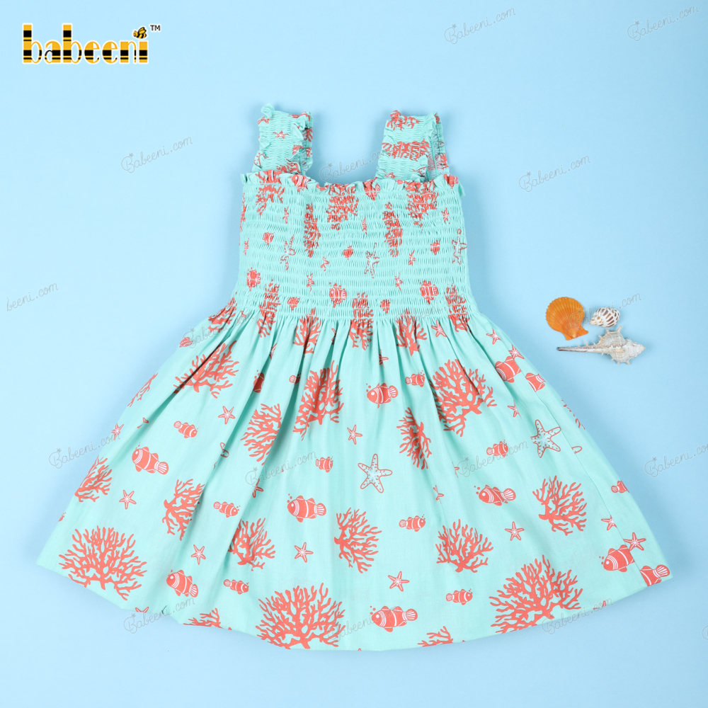 Shirred Sea Creature Printed Dress For Girl - BB3161A