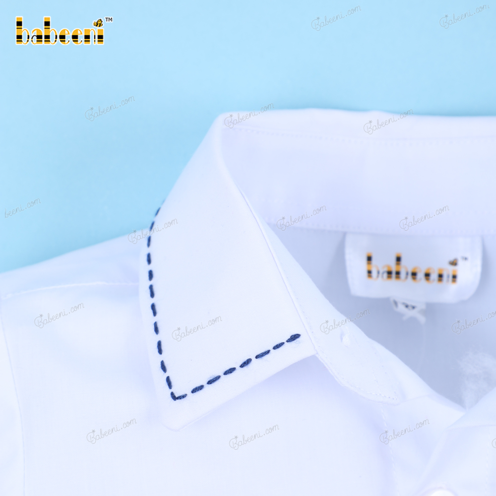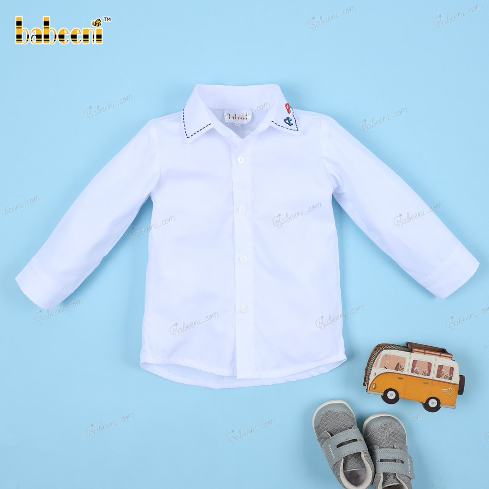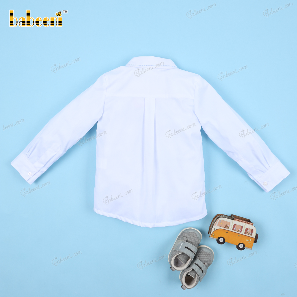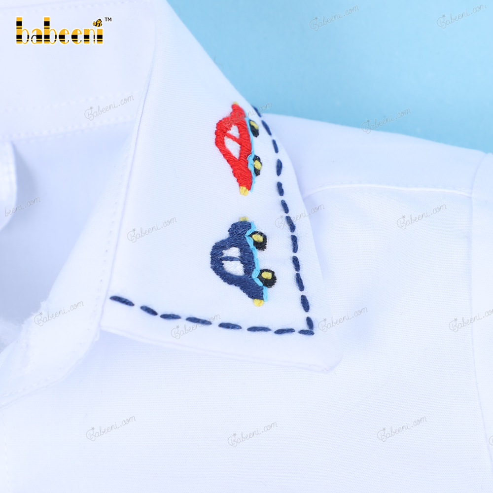Shirt White Car Hand Embroidery For Boy - BB3250B
