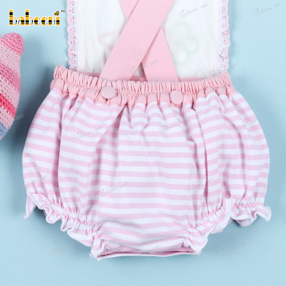 Feature: This cute bubble in pink with a bunny and carrot on the chest. A lovely gift for your girl this Easter eve.