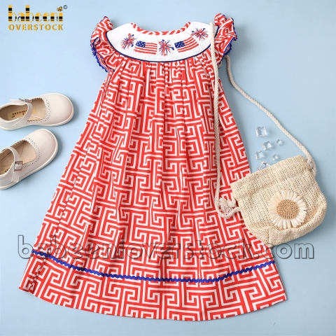 Smocked American flag and firework red greek key dress - BB2012A