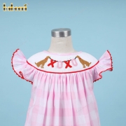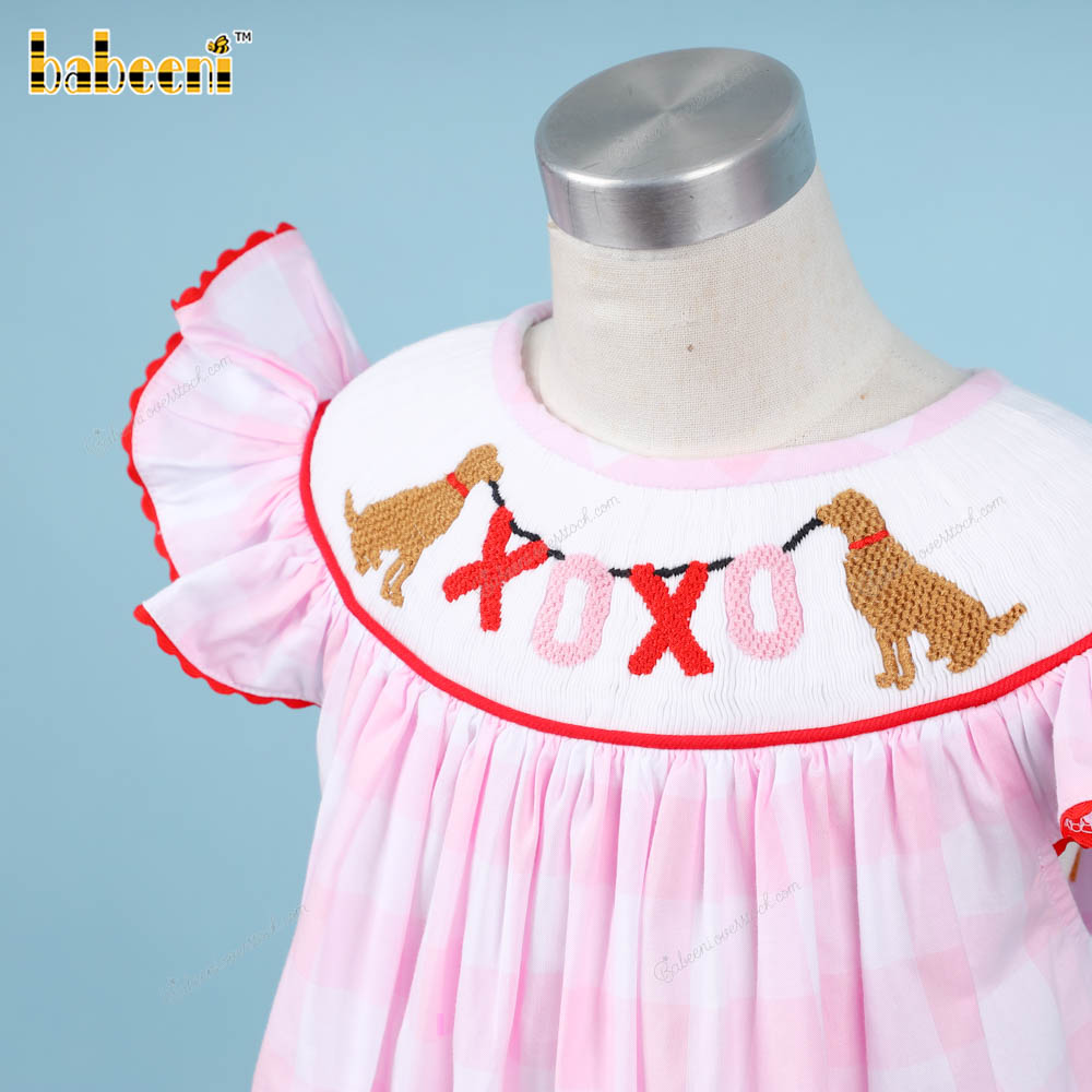 Feature: Smocked dress with dog and XO symbols on the neck for your baby girl this spring and summer.