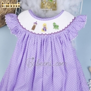 Feature:Beautiful bishop dress for little girl with smocked lighthouse, princess & frog on the chest, angel sleeves, white zigzag on sleeves & hem of dress. It is suitable for summer vacation.
