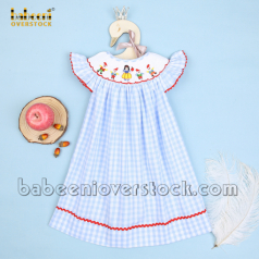 Geometric Smocked Dress In Red Floral White Neck For Girl - BB3219
