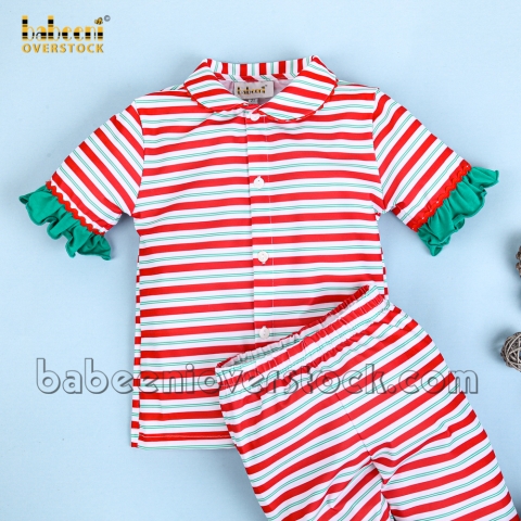 Stripe girl pajama with green ruffles - BB2379A