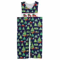 Christmas tree hand smocked boy longall - BB1516A