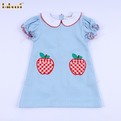 Girl Dress In Blue With Apple Embroidered Back To School Eve - BB3410A