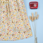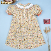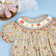 Yellow flower dress with geometric smock around neck - BB1656A